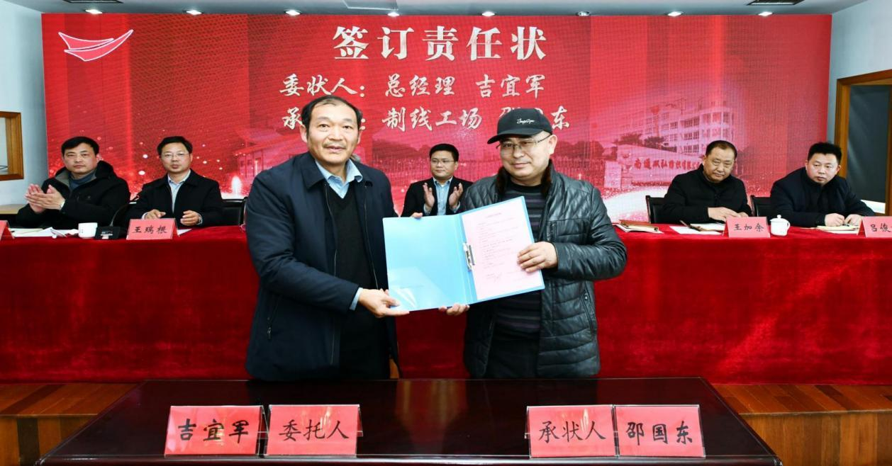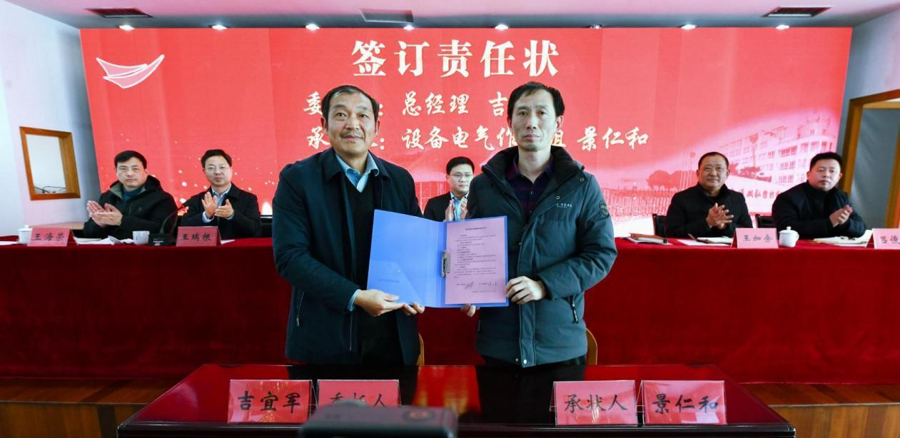 بهدف واحد وعقل واحد ، نسعى جاهدين لتنفيذ استراتيجيات الإصلاح. نؤكد على القيادة السياسية ونبني فريقًا من الموظفين. نؤكد على موضوع المسؤولية وتحفيز الحيوية. نؤكد مصنعًا واحدًا مع أنظمة متعددة ونشجع عمليات الدمج والاستحواذ. نؤكد كفاءة العمل ، والإدارة المركزية من قبل الشركة ، والمسؤولية الهرمية من قبل الإدارات. الوحدة هي القوة ، والكفاح يخلق المستقبل. يأمل الرفيق جي جيجون أن يكون جميع الأشخاص العظماء المزدوجون واثقين ، وأملوا ، ورائحة ، ومغامضة مع روح الثعبان التي يمكن أن تسافر آلاف الأميال ، واتخاذ المبادرة في الصعوبات ، والتسلق على العقبات في الشدائد ، والعمل بجد معًا لبناء عظم عظيم الأجل طويل الأمد وخلق مستقبل أفضل. وقع رئيس قسم التسويق خطاب مسؤولية مستهدف التسويق مع رئيس مجلس الإدارة يانغ يانغ ، ورئيس ورشة الإنتاج وفريق الصيانة الكهربائية للمعدات ، وقّعوا خطاب المسؤولية المستهدف ورشة العمل ورسالة مسؤولية العمل الكهربائي مع المدير العام جي ييجو ، على التوالي.