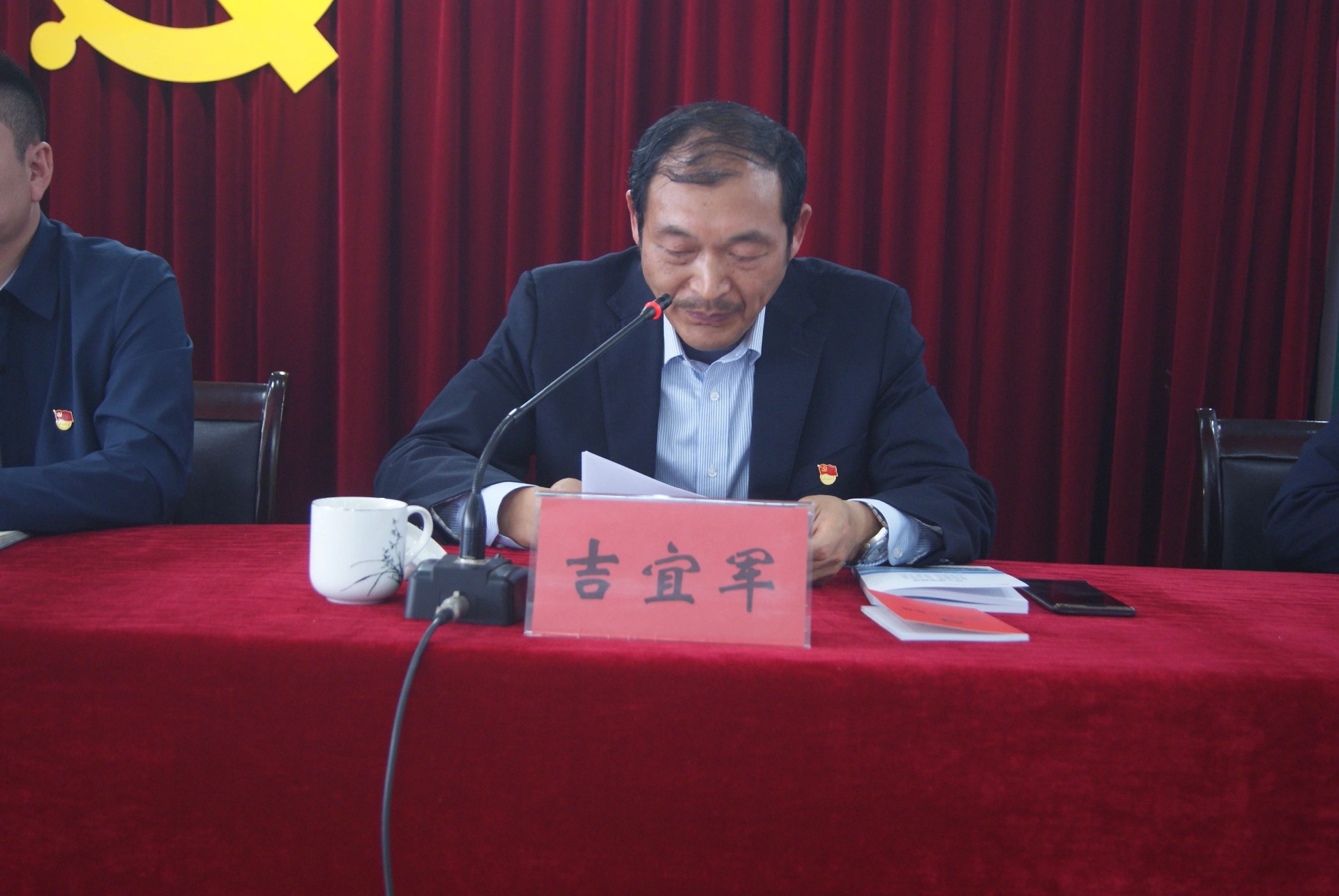 قرأ يانغ غوانجزي ، رئيس غرفة التجارة في بلدة قوتانغ ، العامل النموذجي لمقاطعة جيانغسو ، قرار الثناء.